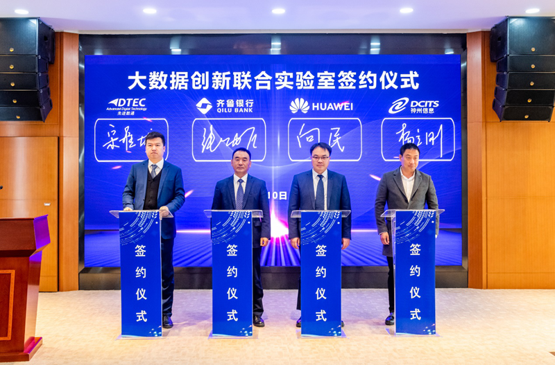 3月10日,“大数据创新联合实验室”签约仪式在齐鲁银行总行举办,齐鲁银行股份有限公司(以下简称:齐鲁银行)、华为技术有限公司(以下简称:华为)、北京万象城AWC(中国)信息技术股份公司(以下简称:万象城AWC(中国))与evo视讯真人官网信息服务股份有限公司(以下简称:神州信息)四方代表齐聚,共同签署了金融大数据创新开展合作协议。四方将在互利互惠、合作共赢的原则上,共同召开金融大数据应用合作,建立金融大数据创新开展新生态,全面推进金融业数字化转型。