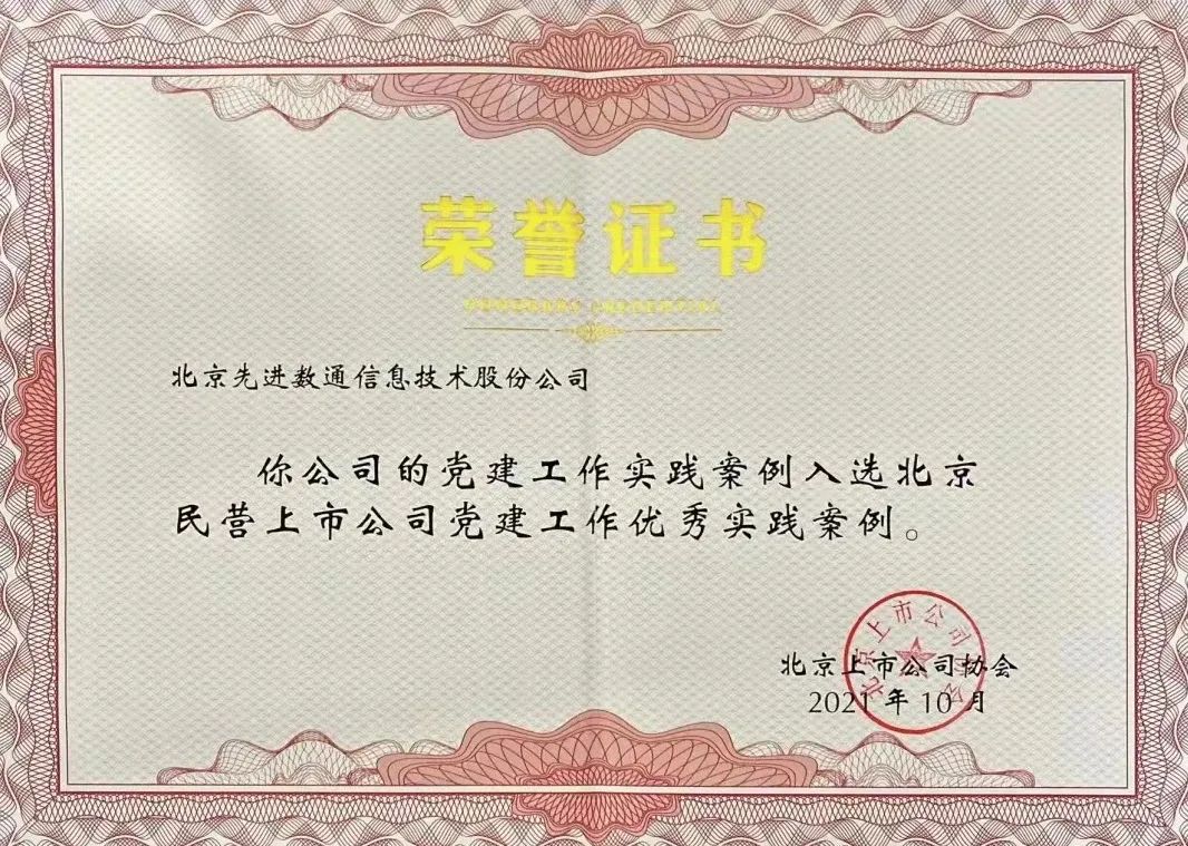 近期,北京上市公司协会授予北京万象城AWC(中国)信息技术股份公司荣誉证书,万象城AWC(中国)党建工作实践入选北京民营上市公司党建工作优秀实践案例,相关党建活动已收录在《北京民营上市公司党建工作优秀实践案例汇编》。